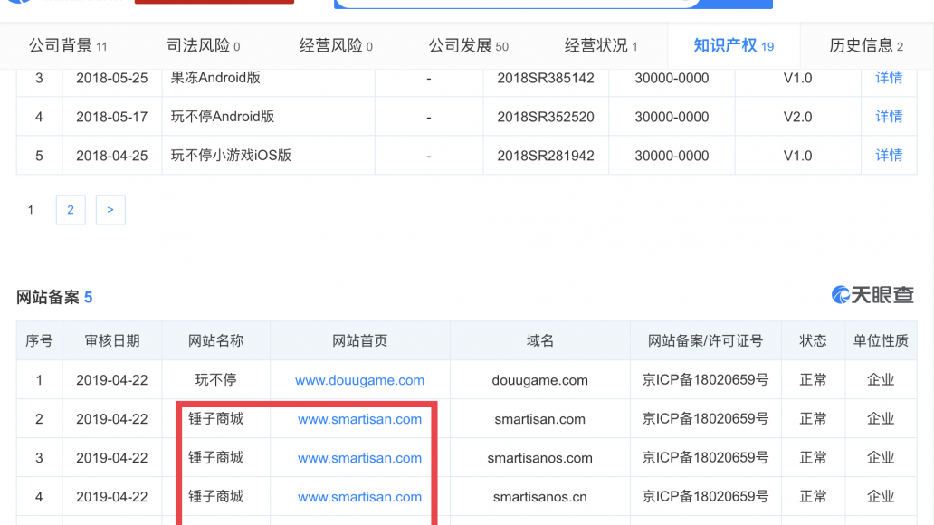 字节跳动子公司网站备案新增锤子商城