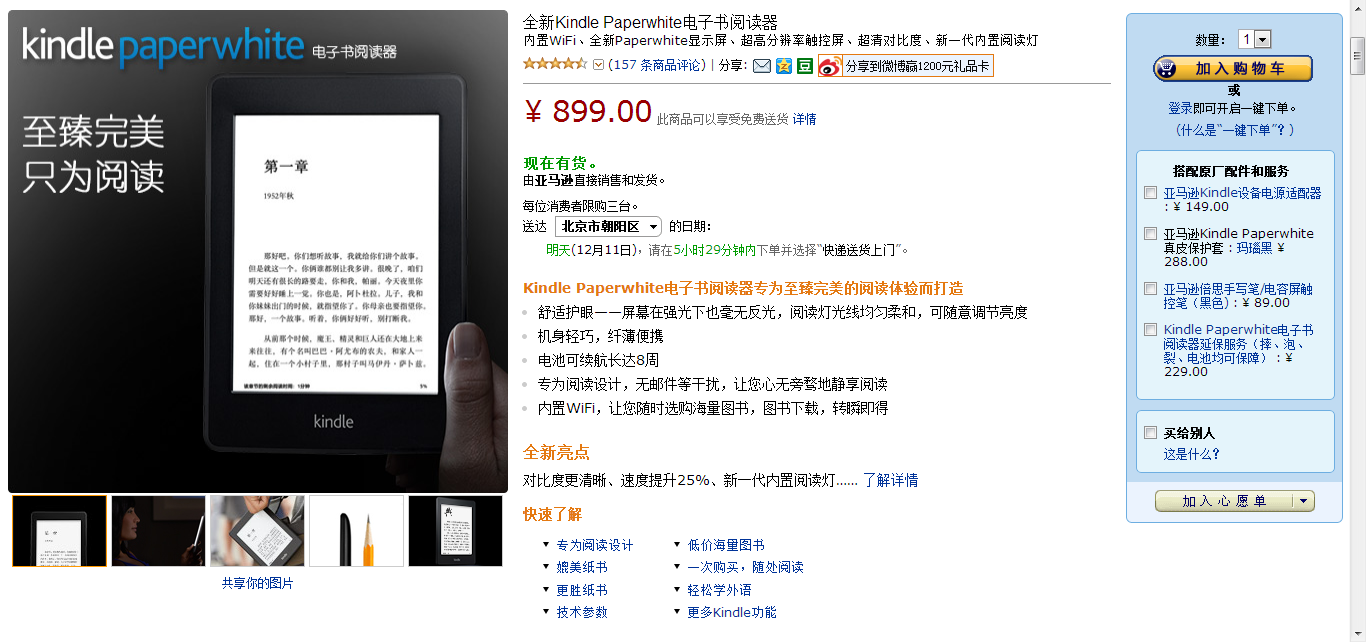 来自亚马逊中国的消息,亚马逊全新的Kindle…