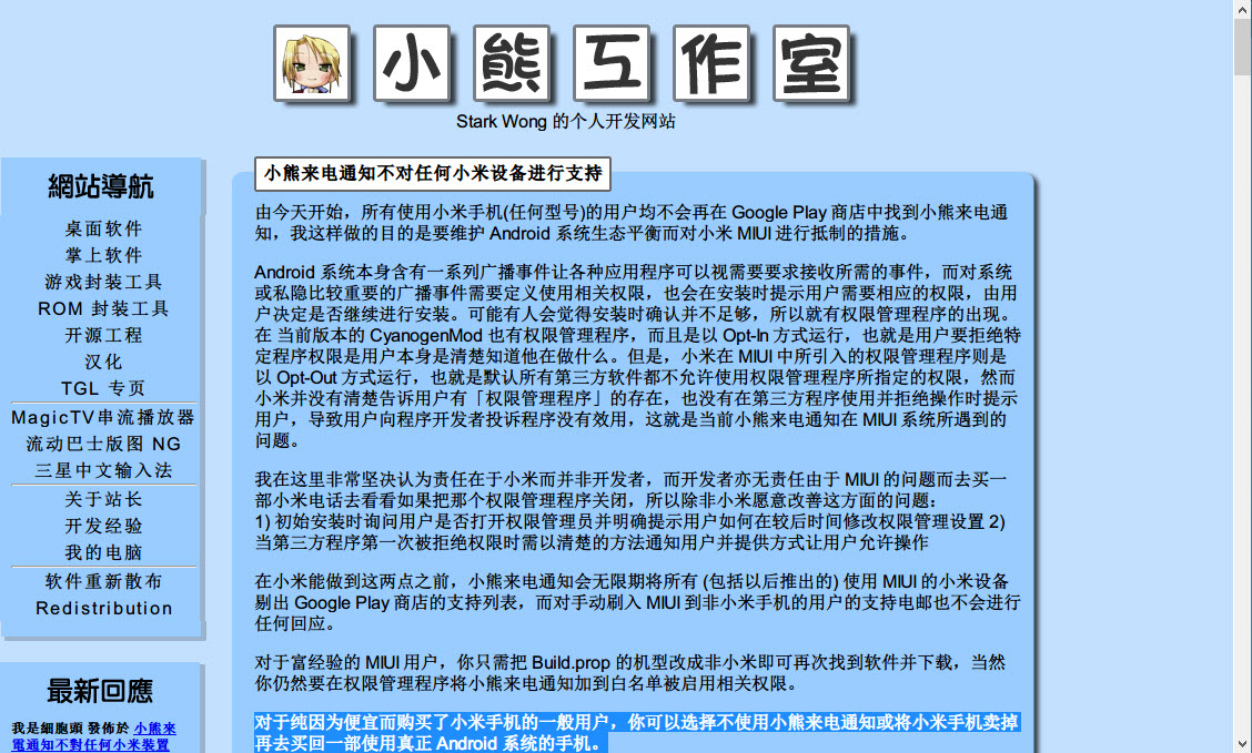 香港版“来电通”小熊来电宣布抵制MIUI