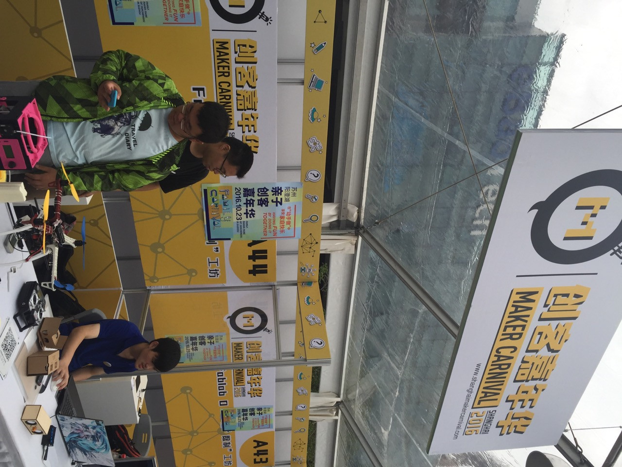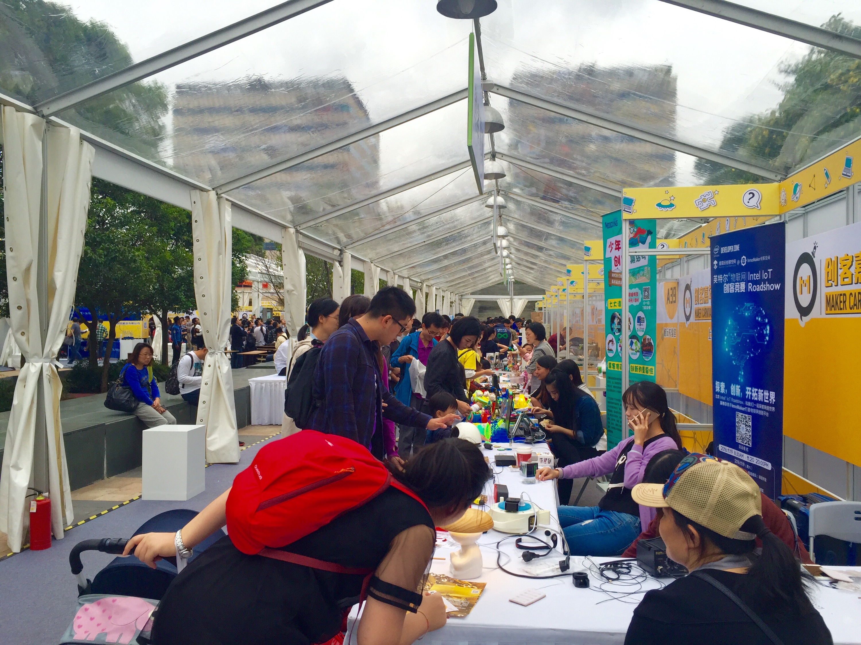 13:00 下午天气不错,凉风习习,创客们的好戏也开始了 现场人头攒动中。不少的家长带着孩子到此亲子一游呢!