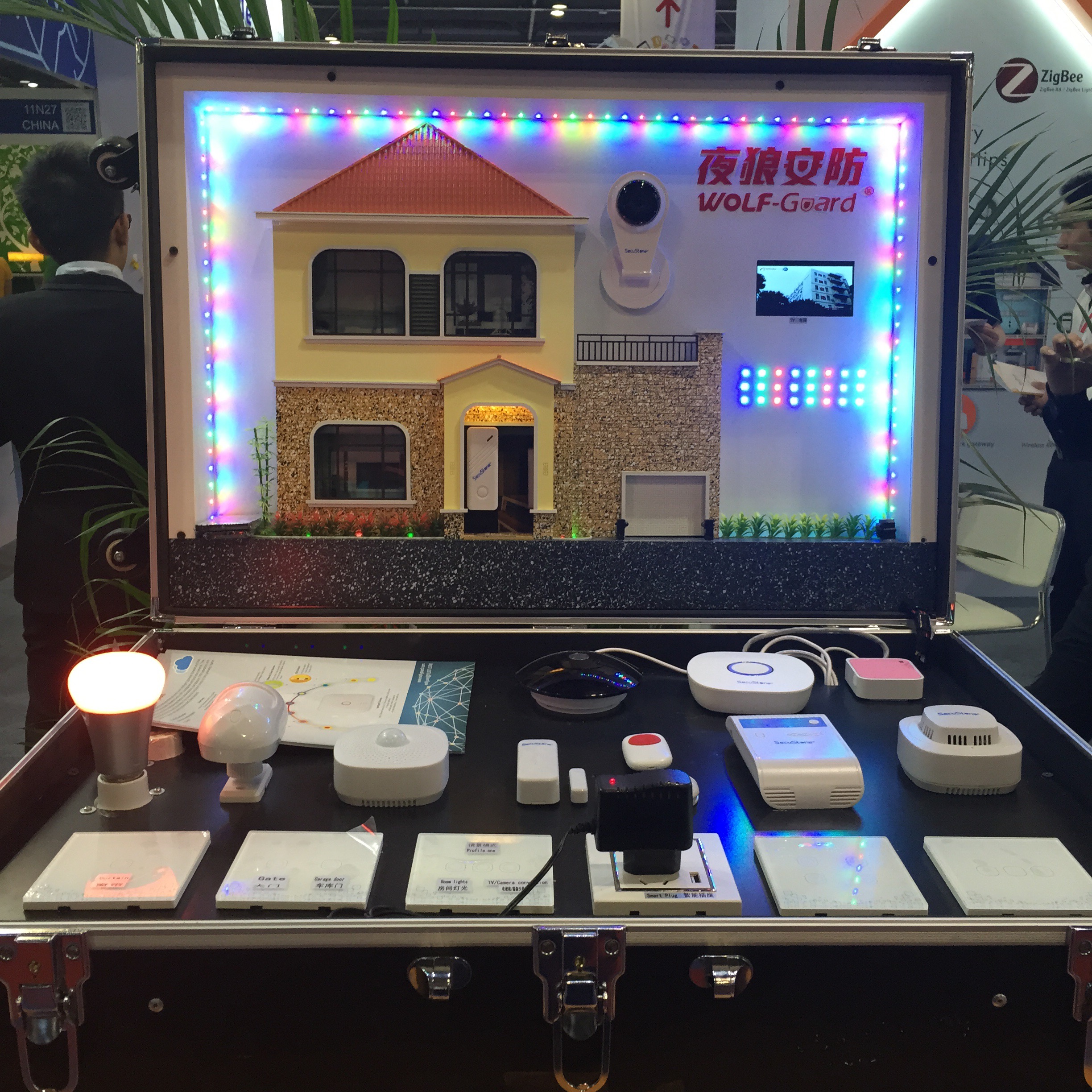 同样是室内的安防工作,SECUSTONE驰通达的产品线就更加多元化一点,这个名为夜狼安防的系统同时带有一套门禁和警报器,传感器,智能插座连接的家庭电器设备等,只需要通过中控的主机来一键控制,就可以做到场景模式下的联动,充分表现了在全自动化系统下如何轻松地监管及控制不同的家居电子产品这一长久来家庭主妇们的美丽设想!