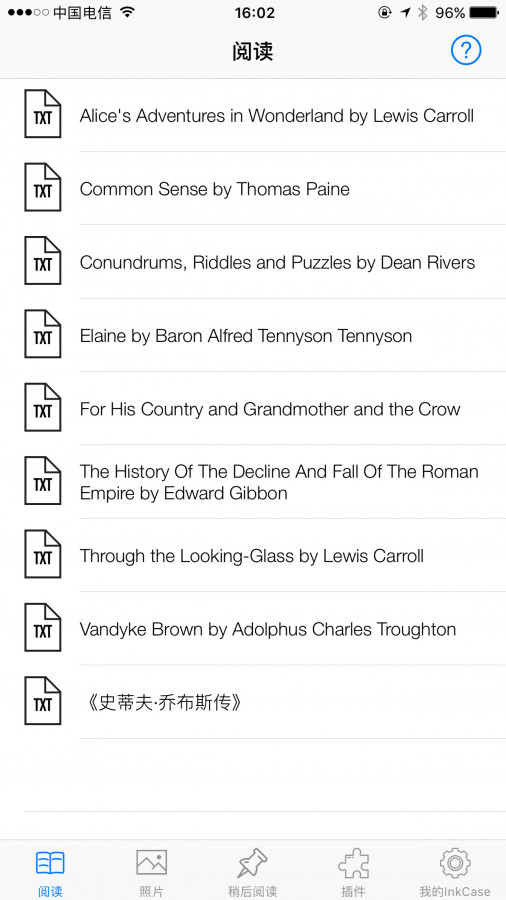 电子书阅读是其最大的亮点,其支持ePub和TXT格式的电子书。用户可以在手机上选择文件推送到InkCase中,可以达到纸书的阅读体验。同时为了满足不同人士的需求,其可以定义字体的大小和行距。
