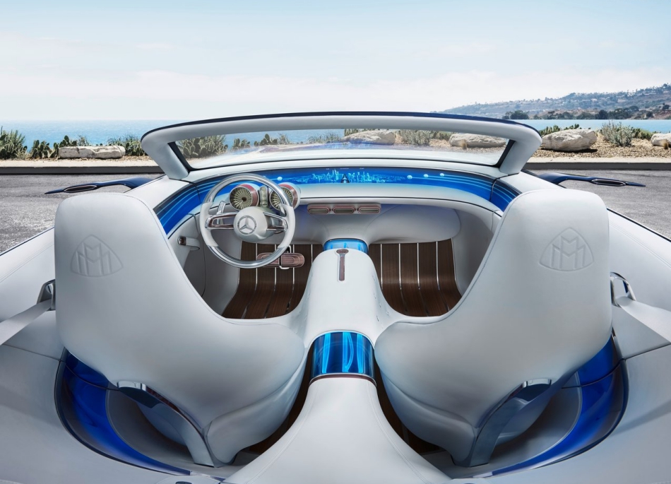 动力部分,奔驰为Vision Maybach 6 Cabriolet Concept 四轮各自配置独立的电动马达,总计可输出高达750hp的最大马力,官方数据显示,该车仅需4秒即可完成百公里每小时的加速,续航力可达500km(NEDC测试标准),更容许350kW的充电系统,仅需5分钟即可补充100km的行驶里程。
