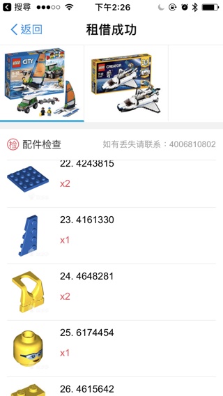经过测试了解,玩多多平台最少是七天起租。接下来你就会得到一份电子版的说明书,在对象为乐高的玩具说明书当中包含了颗粒的清单方便你作配件检查,十分得周到。接下来你要做的就是等待惊喜上门了!