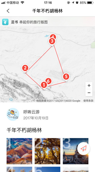 足书把这样的旅行回忆称为”轻游记”,相对于目前的旅游UGC平台,内容本身更多的体现玩了哪条路线,在哪个景点、景区和城市拍了照片,有什么心情,比攻略省去了大量的精力,并且可以一键分享到各种社交平台。足书轻游记提供了介于朋友圈发照片与传统长篇文字攻略之间的新选择。