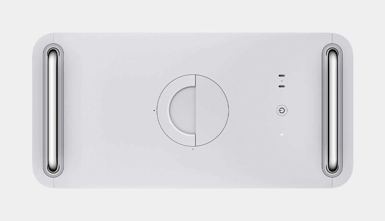 另外,新 Mac Pro 上方装有提手,可以手提方便拿起,同时底部还可以选装轮子,方便移动。新 Mac Pro 可同时连接 6 台 Pro Display XDR;Pro Stand 支架可实现多角度调节,还支持竖屏模式,也可以随时拆卸。
