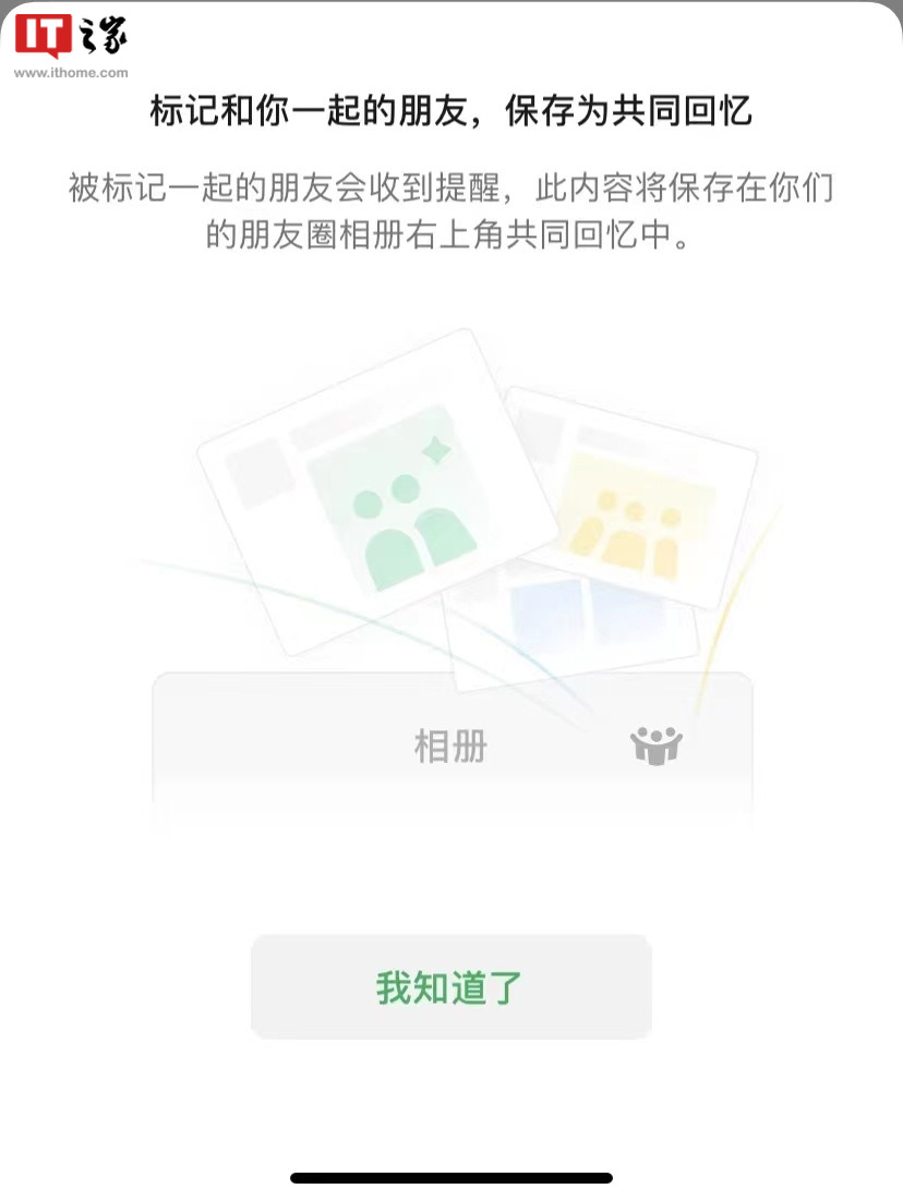 微信正在测试朋友圈相册共同回忆功能。根据 IT 之家的说法,最近有网友发现该功能正在进行灰度测试。 有用户在发布朋友圈页面看到「谁可以看」选项上方出现了新选项,可选择「和谁一起」。通过这功能发布动态后,微信就会给你圈中的朋友发出提醒。而当你发布该动态后,相关内容将保存在你们的朋友圈相册右上角「共同回忆」中。 图:IT 之家 微信 朋友圈 你可能会喜欢 领克 GT 概念跑车登场,带伸缩锋利前唇|2026北京车展2026/04/24 13:11 比亚迪方程豹带来首款跑车 FORMULA X|2026北京车展2026/04/24 10:49 小米 Vision Gran Turismo 国内首秀|2026北京车展2026/04/24 10:28 Xbox 新 CEO:微软将“重新评估我们对独占游戏的态度”2026/04/24 10:10