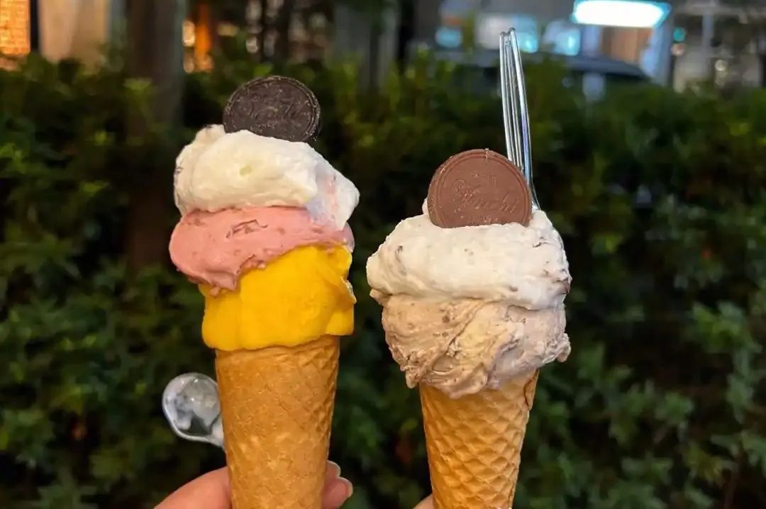 乳白冰淇淋球堆成雪山,炼乳如熔岩缓缓侵蚀!勺子挖到底层脆筒,”咔嚓”声里奶香裹着冰凉奶油席卷口腔——热量?不存在的!海风早吹跑了~