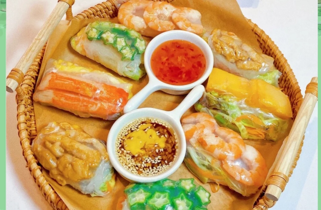 舌尖诱惑米纸裹着鲜虾薄荷透如琉璃,蘸鱼露汁咬破的刹那,清甜虾肉与炸葱酥在香草丛中短兵相接!吃它像拆解味蕾迷宫,每一口都是新线索!