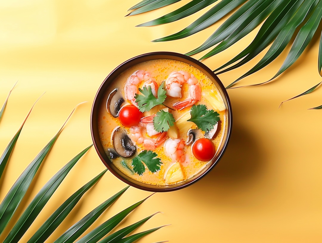 咖喱叶南姜柠檬草在椰浆里熬成金黄谜团,鸡肉吸饱浓汁变身香料载体!咬下去像打开潘多拉魔盒——酸辣甜咸在舌面轮番轰炸!