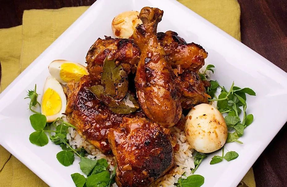 黑酱醋卤汁里沉浮的鸡块,早已被酸香浸透骨髓!皮肉分离的瞬间,醋香混着椰糖甜直冲天灵盖——菲律宾祖传酸功,专治食欲不振!