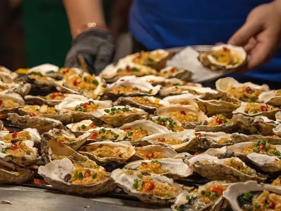 乳白蚝肉卧在贝壳浴缸里,盖着金灿灿的蒜蓉绒被。炭火一吻,蚝汁咕嘟冒泡,混着蒜香奶香的海潮鲜味轰然炸开!提示:吃前先嗦一口滚烫汤汁,鲜到天灵盖发麻!