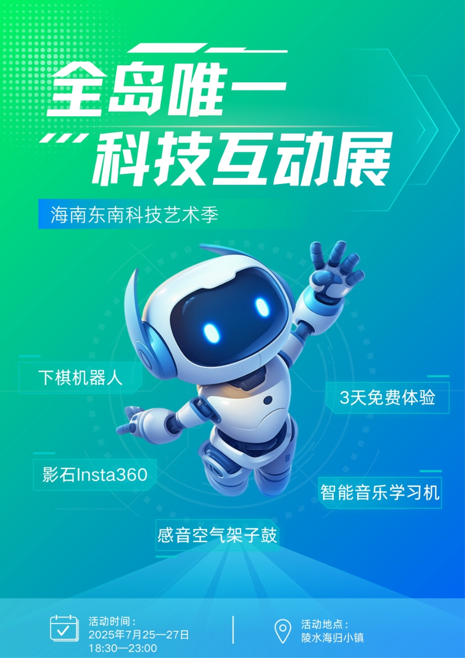 7月25–27日,海南陵水将迎来一场特别的盛会——这是全岛唯一、首创“科技 x 音乐 x 海滩”三重融合的未来体验场。本届科技互动展汇聚100+科技公司,预计吸引超10万人次参与,将彻底打破传统展览的边界。在这里,科技不止“可看”,更“可触、可玩、可共创”!