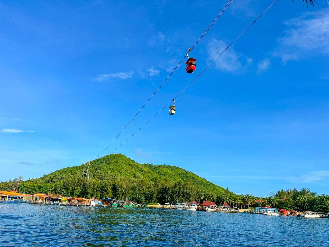坐上跨海索道,脚下是渔港风光,前方是绿意盎然的南湾猴岛。这里生活着近1500只猕猴,是世界唯一的热带岛屿型猕猴自然保护区。