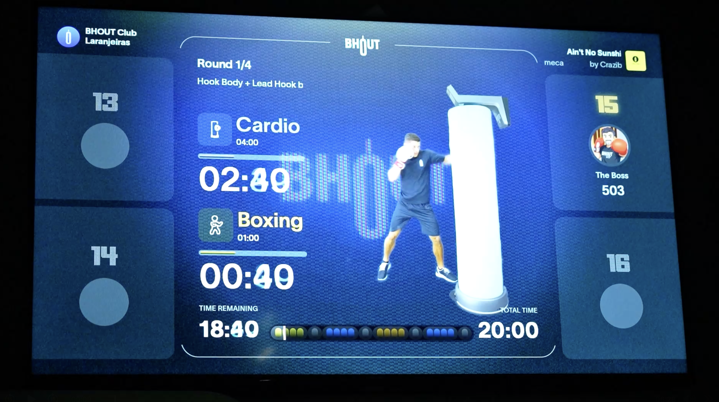 基于这些数据,Bhout把训练设计成一种游戏化体验。系统会为每一次击打计算积分,拳馆内设置多维度排行榜。用户既可以挑战自己的历史最好成绩,也可以在课程中与其他人同台竞技。至此,训练不再只是重复动作,而变成了一种带有反馈和竞争机制的互动过程。