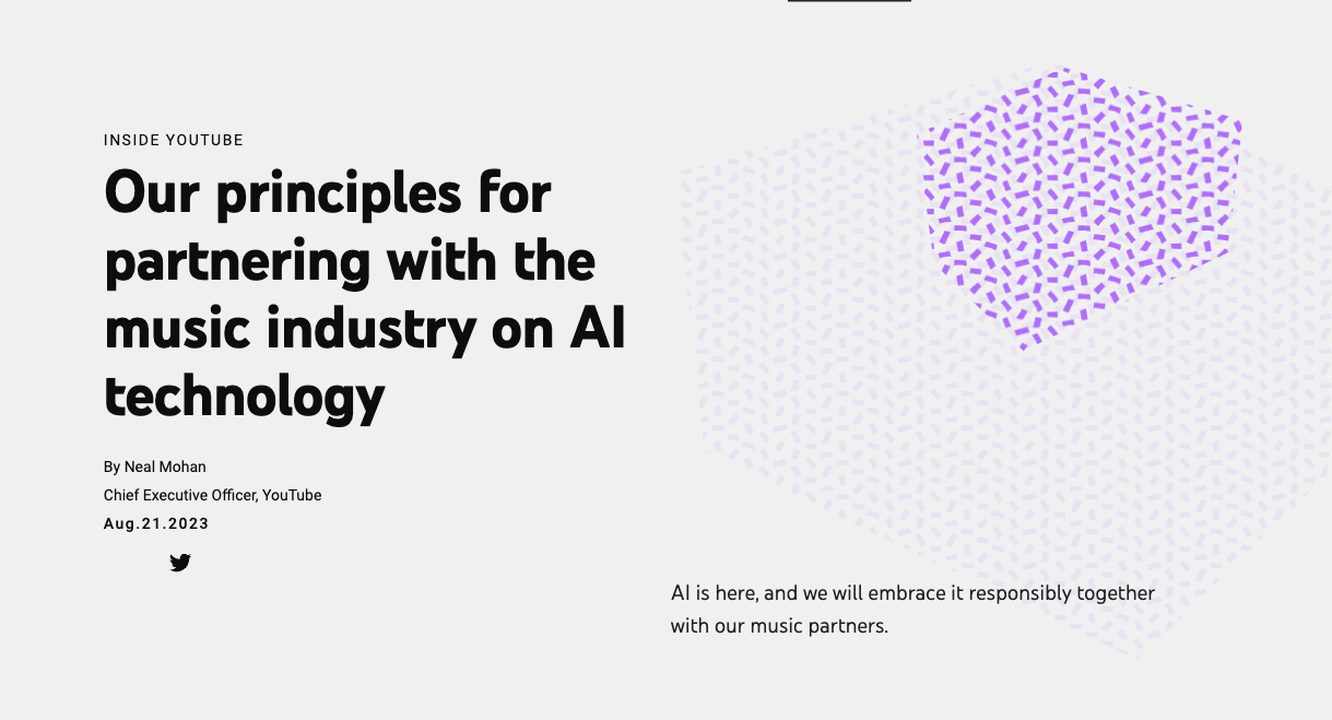 YouTube 官宣推出“音乐 AI 孵化器”,环球音乐集团是其首个合作伙伴。仅 2023 年,YouTube 上与 AI 工具相关的视频观看次数就超过 17…
