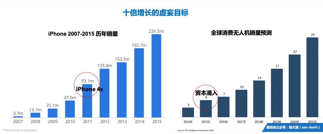 同样,以无人机行业为例,大众以为的行业爆发是2015年。但实际呢,市场只是在线性增长而已。那一年,资本大量涌入,媒体狂轰滥炸,让人产生了行业一夜暴热的假象罢了!