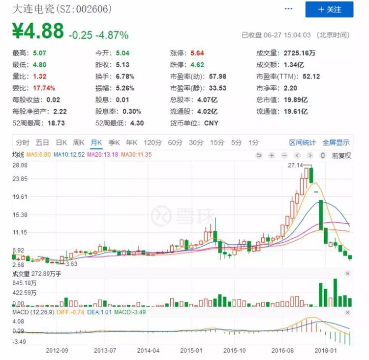 到2016年12月,获利已超6亿元。而大连电瓷也在没有任何实质利好的情况下,四个月内涨幅高达100%,甚至触发了深交所大数据监测的警报。