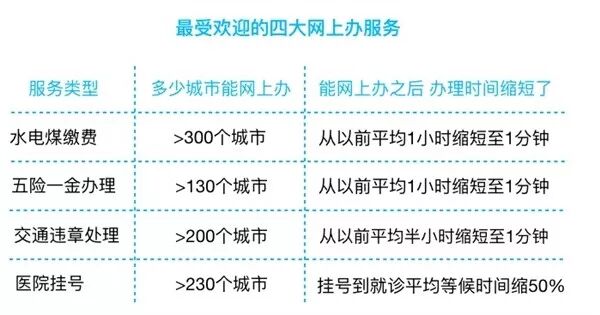 目前,支付宝已为300余城市近5亿人提供包括政务办事、医疗服务、交通出行、生活缴费等在内的100余类服务,超过50%热门办事功能可在网上办理,已有超过3亿家庭,使用过支付宝水电煤缴费。