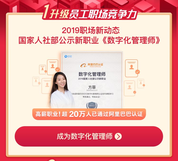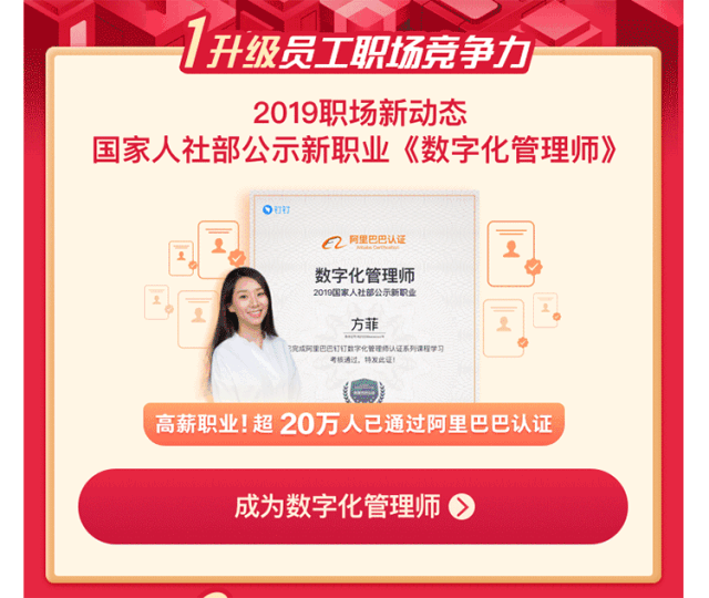 春节后的工作日,很多人打开钉钉,都在首页看到了关于“数字化管理师”的提示。这可能是大部分人第一次听说数字化管理师。