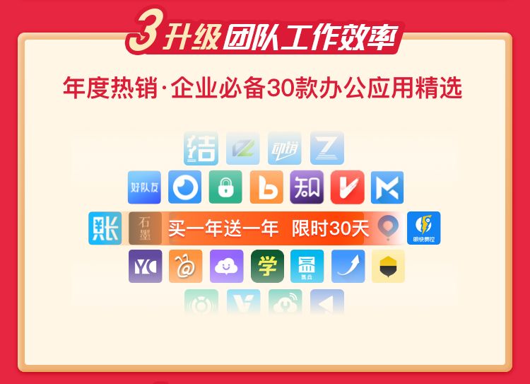 除了张晓华的“授客学堂”,针对企业的多样化需求,钉钉联合生态伙伴,开放平台上面的第三方应用推出买一年送一年的优惠活动。活动覆盖客户管理服务类、财务采购报销类、任务协同类、人力资源类、安全服务类等企业日常办公所需的30款应用。