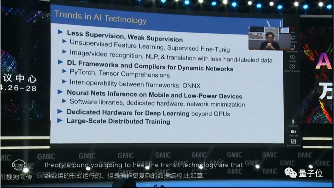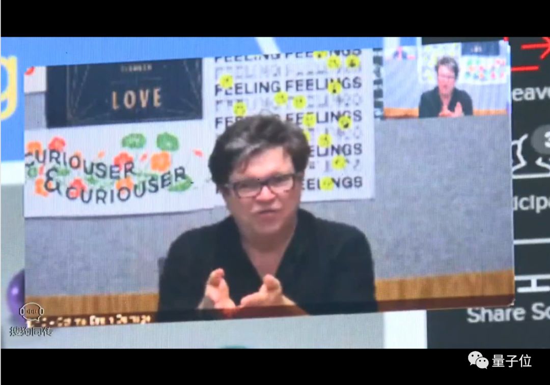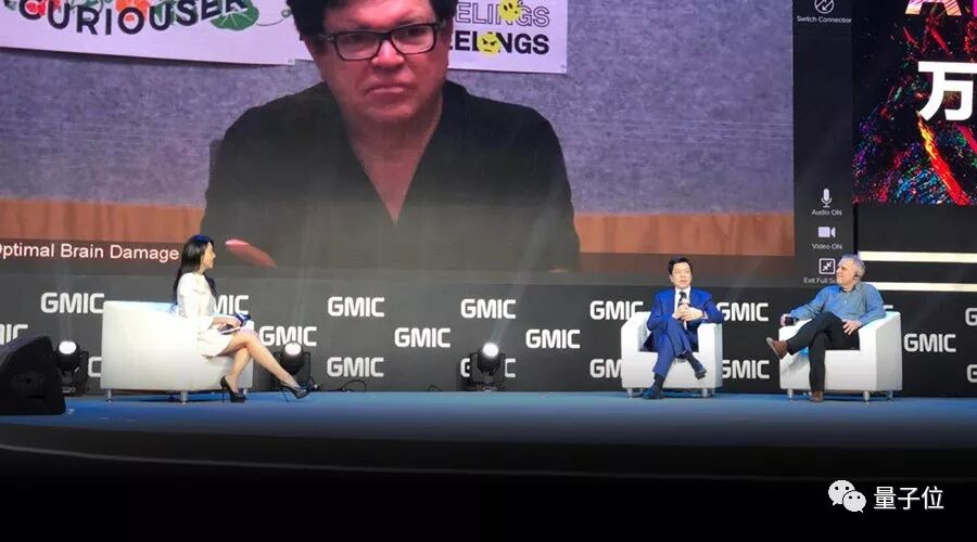 由于LeCun是远程视频连线,所以现场对话时,场面是这样的。