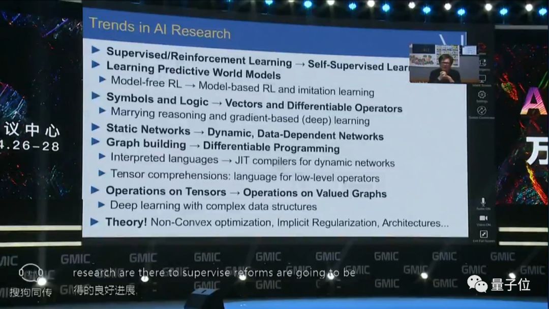 当然LeCun也有自己的想法。他更关注非监督学习和自监督学习,他认为只有实现了这些,机器才能从环境中学习足够多的背景知识。