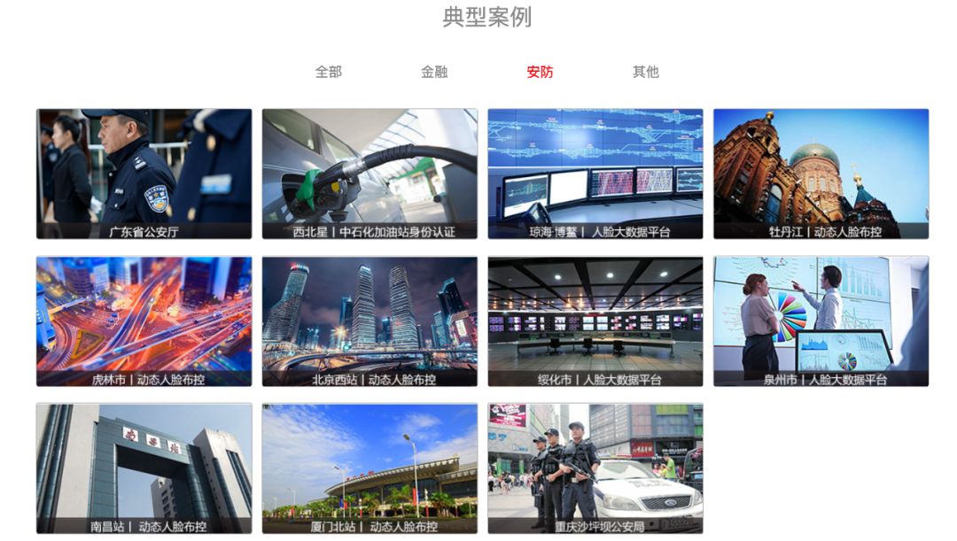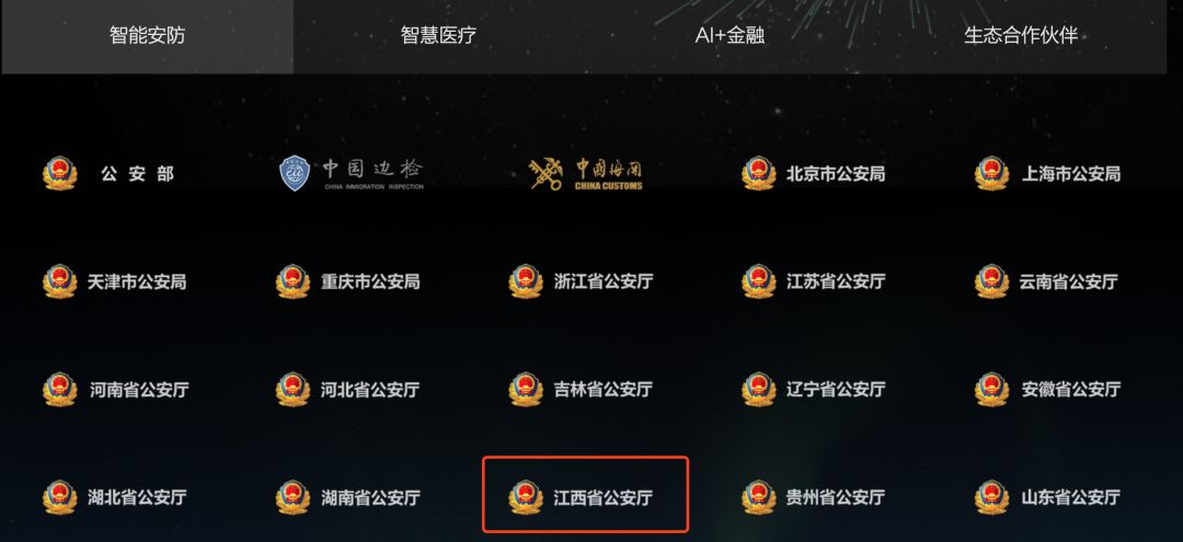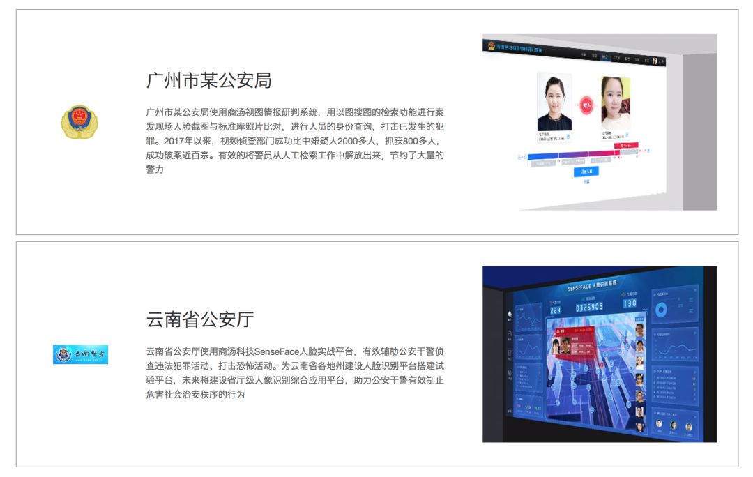 商汤在官网列出了广东某市公安局,以及云南省公安厅。