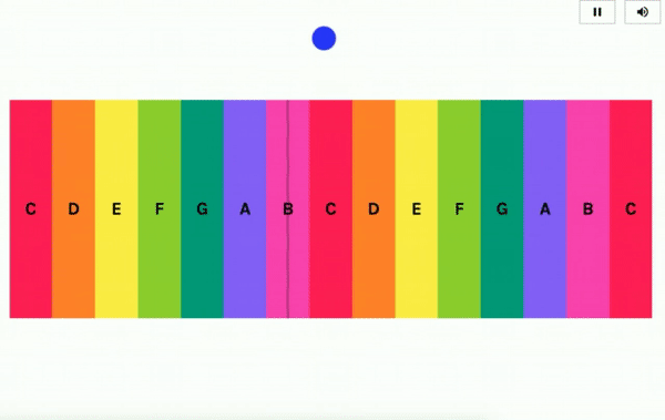 屏幕上的每个彩色区域都应对这一个音调,同样用脸把小圆点放上去即可触发,摇头晃脑,乐声出现。