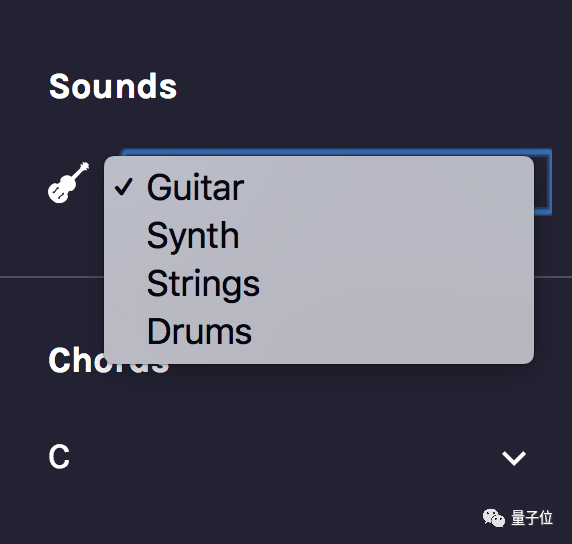 或者打开语音控制开关,默认的音色是吉他,喊一声strings,就可以变成管弦乐,喊一声drums,就可以变成鼓点。