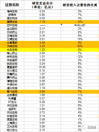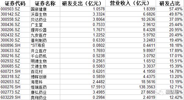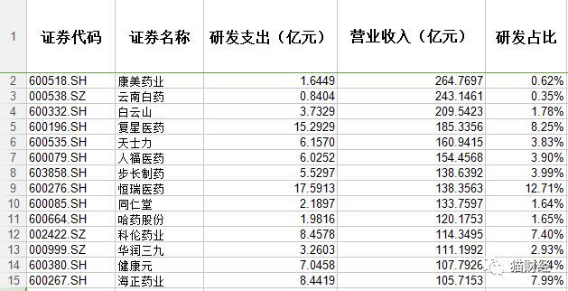 从数据上看,像康美药业、云南白药这些营收超过200亿的“大户”,研发投入占比不足1%;而研发比重高的企业营收大多在十亿以下。