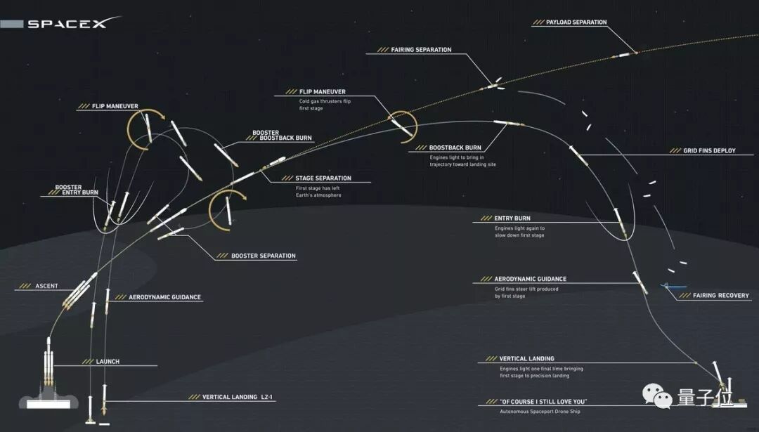最后,放一张“猎鹰重型”发射和返回的全程图。