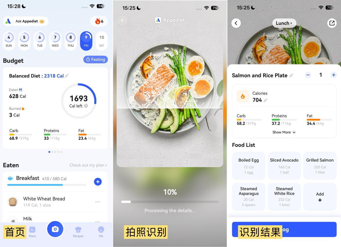 在健康领域,合合信息推出AI饮食健康助手Appediet,用户通过拍照即可识别食物营养成分,生成热量报告。此外,Appediet还可结合用户健康数据定制饮食计划,并提供个性化营养分析报告、健康食谱推荐、定制饮食计划等服务,打造“人人可用的 AI 随身营养师”。