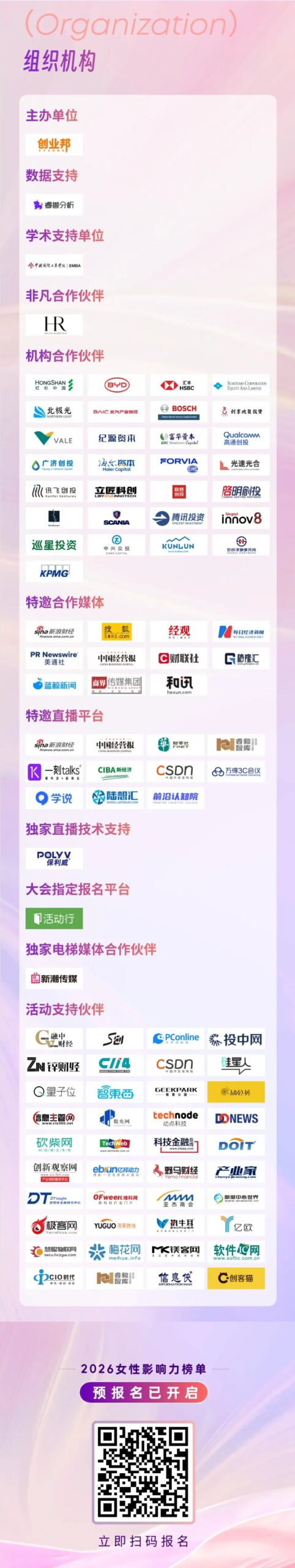 现在,2026年创业邦值得关注的女性影响力榜单预报名已经启动,识别下图二维码立即报名,下一个春天,一同见证更多科创女性的光芒!