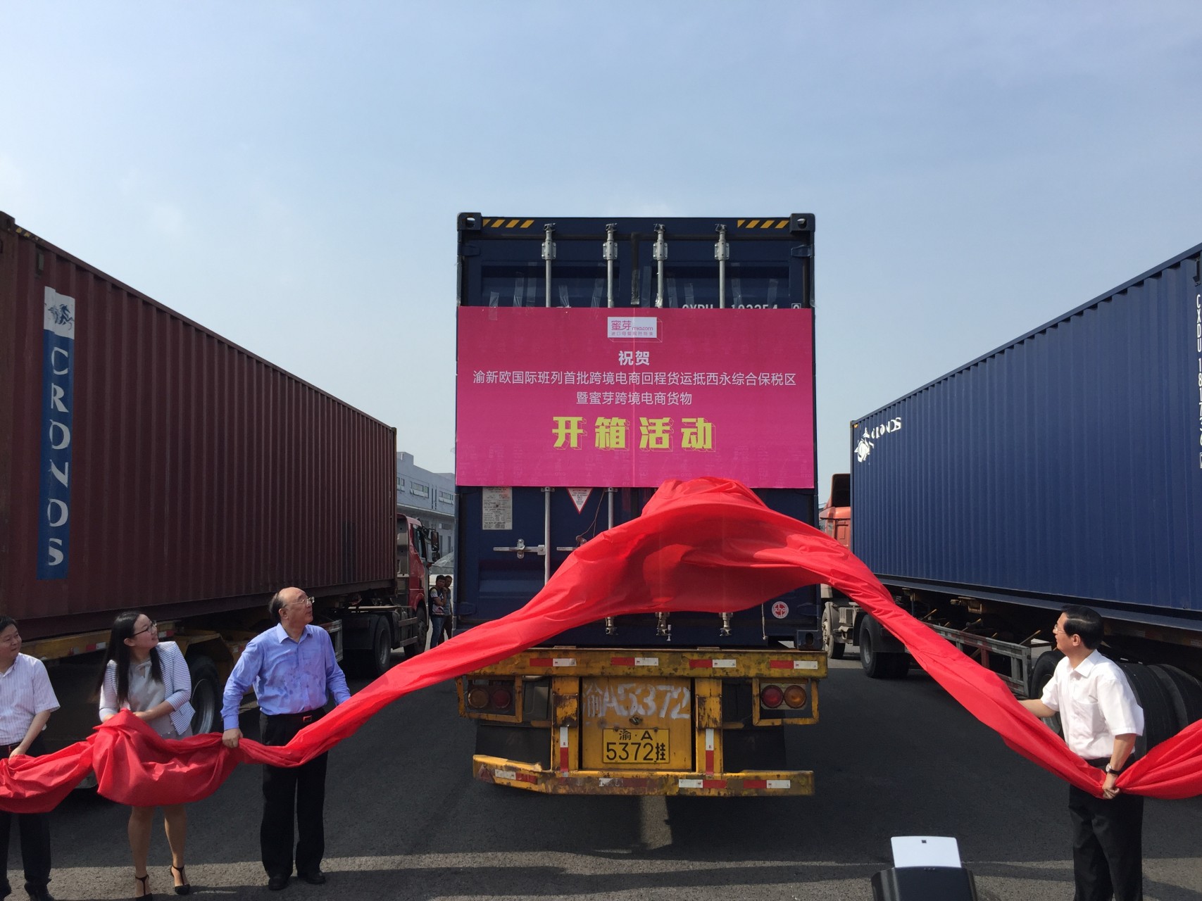 重庆市长站台,蜜芽宝贝首批渝新欧跨境商品到港