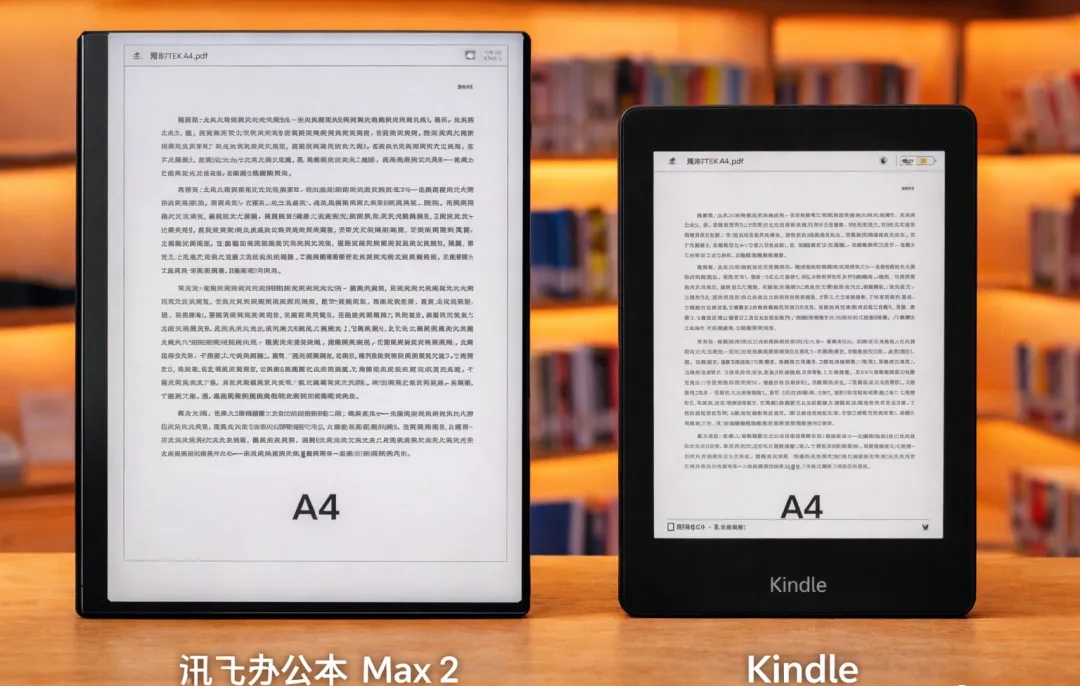 左:讯飞办公本MAX2;右:Kindle