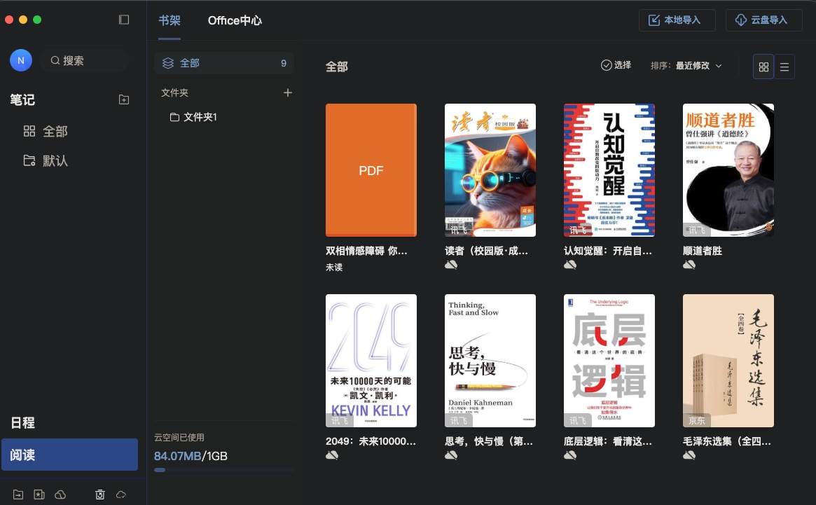 跨屏协作上也有无缝协作的体验:与桌面移动三端云端同步的“读写笔记”App 深度互联,笔记、书架、日程管理均可双向同步。并且还支持微信传输文件至本机,也支持将办公本内容一键分享至微信、邮件、多个网盘账号(百度网盘、iCloud、OneDrive 等),实现资料自由流转。