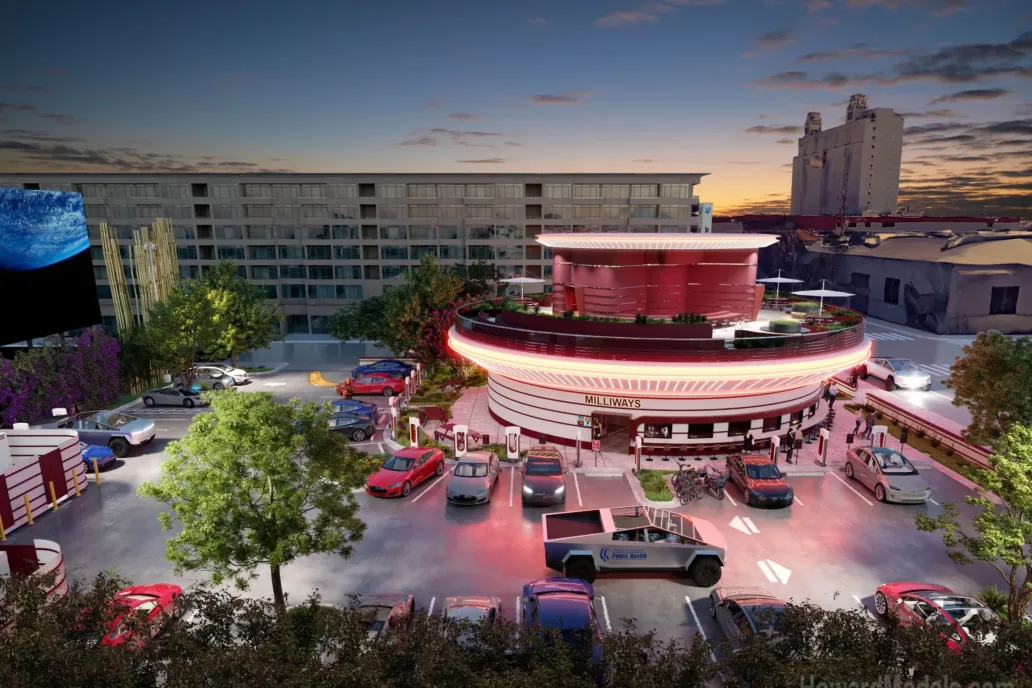 动察:特斯拉的未来派超级充电站,配有汽车影院和餐厅